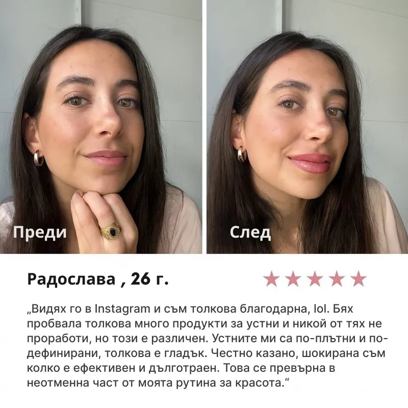 • "Винаги съм имала малки устни и обмислях филъри, но реших първо да пробвам това — и уау. Толкова се радвам, че не си сложих филъри, защото това е много по-добро. Изглежда по-естествено и е безопасно и естествено!!"