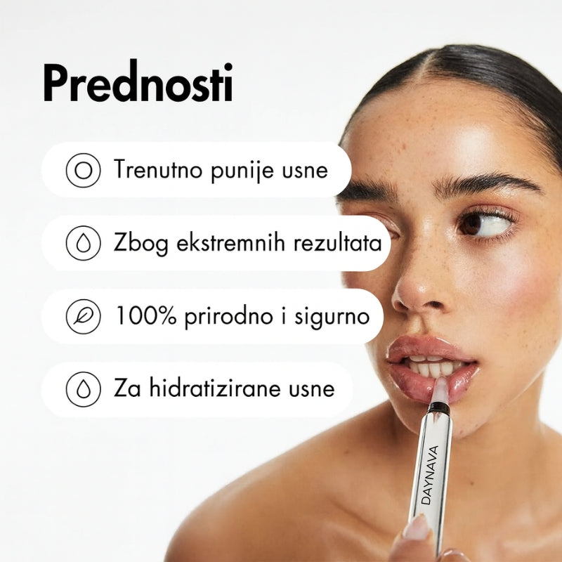 S 100% prirodnim sastojcima, Daynava je jedini dokazani način da trenutno i sigurno dodate usnama volumen i sjaj.